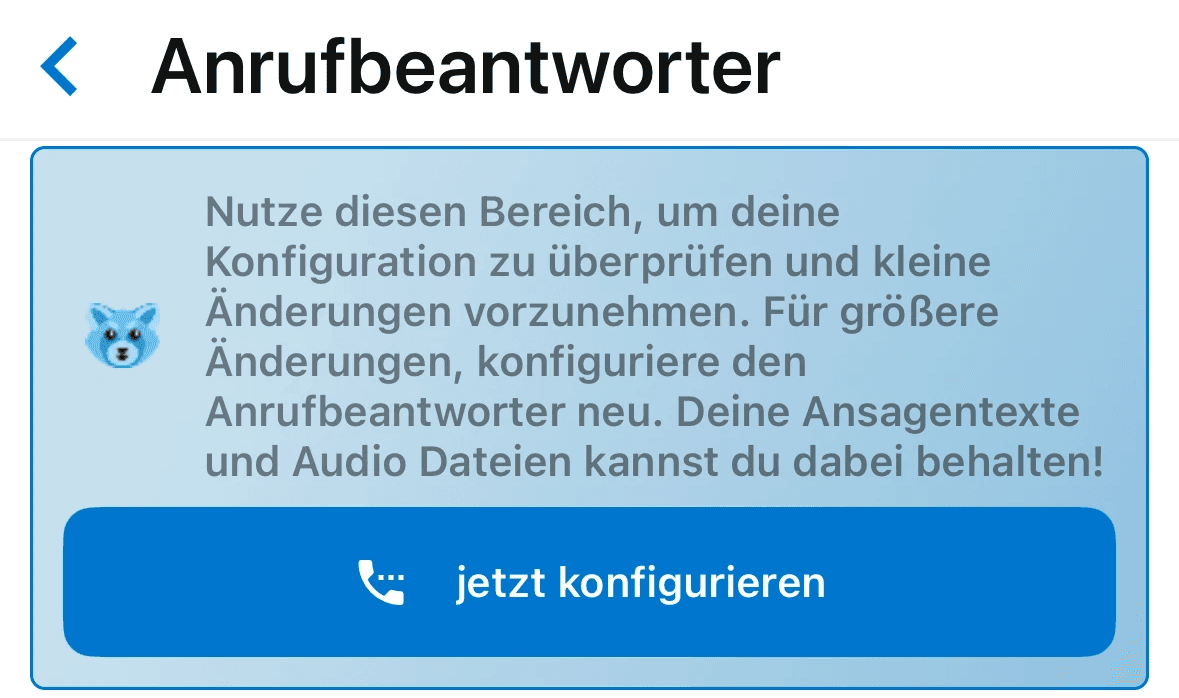 Keine Sorge — auch wenn du keine weiteren Automationen verfügbar hast, kannst du ganz normal Anrufe empfangen und Sprachnachrichten aufnehmen. Die Gesprächsführung ist ohne Automationen lediglich verkürzt und die automatische Abfrage von Informationen eingeschränkt.