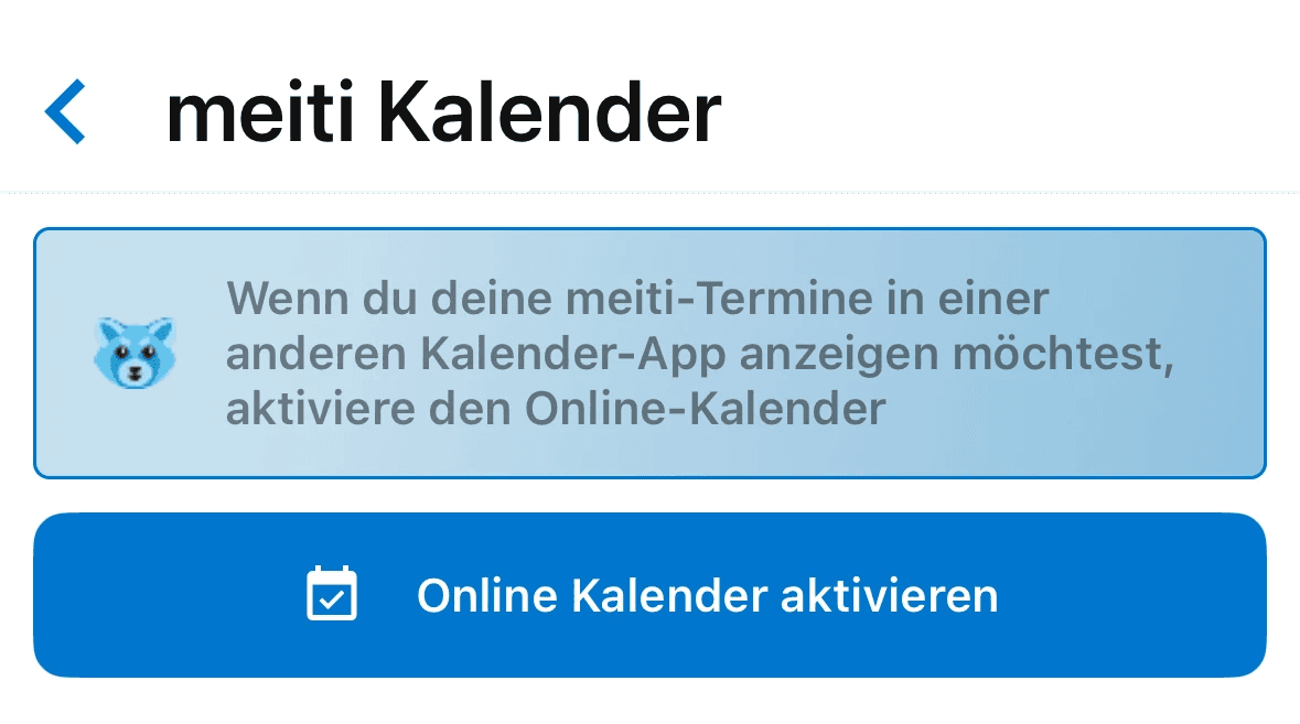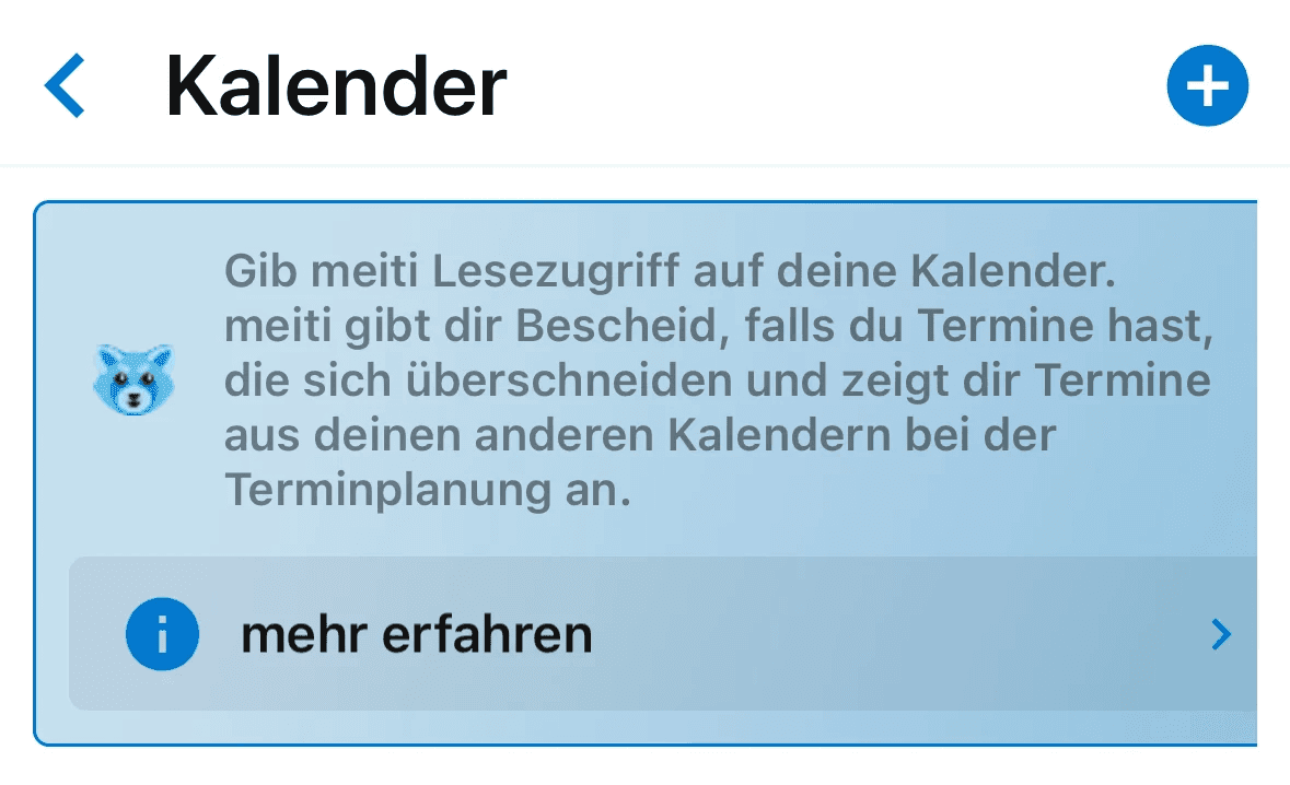 Füge mit nur wenigen Schritten deine bestehenden Kalender in der meiti App hinzu.